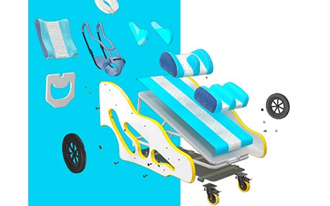 Es un gimnasio multifuncional para el apoyo en la rehabilitación en casa, diseñado para niños y jóvenes con parálisis cerebral o discapacidad motora.